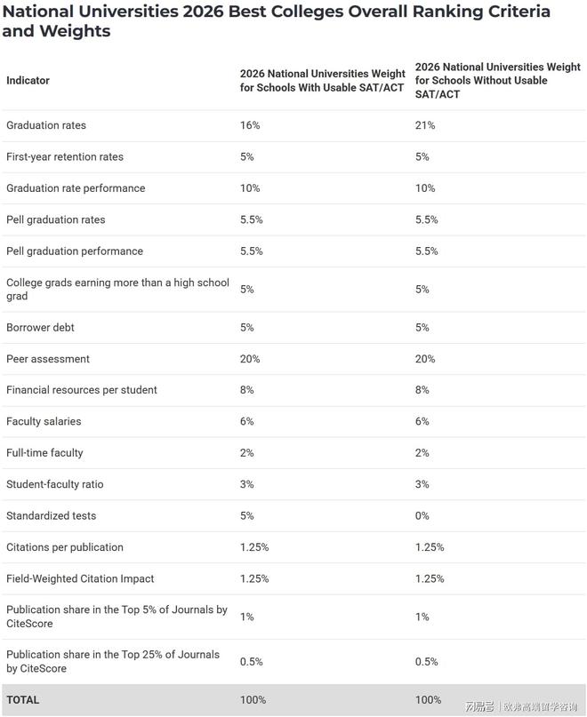 U. S. News每年的评分指标和标准每年都有变化,但今年的打分体系调整非常细微,包括学生保留率、毕业生负债、毕业生收入、佩尔助学金毕业率、教师资源等指标。