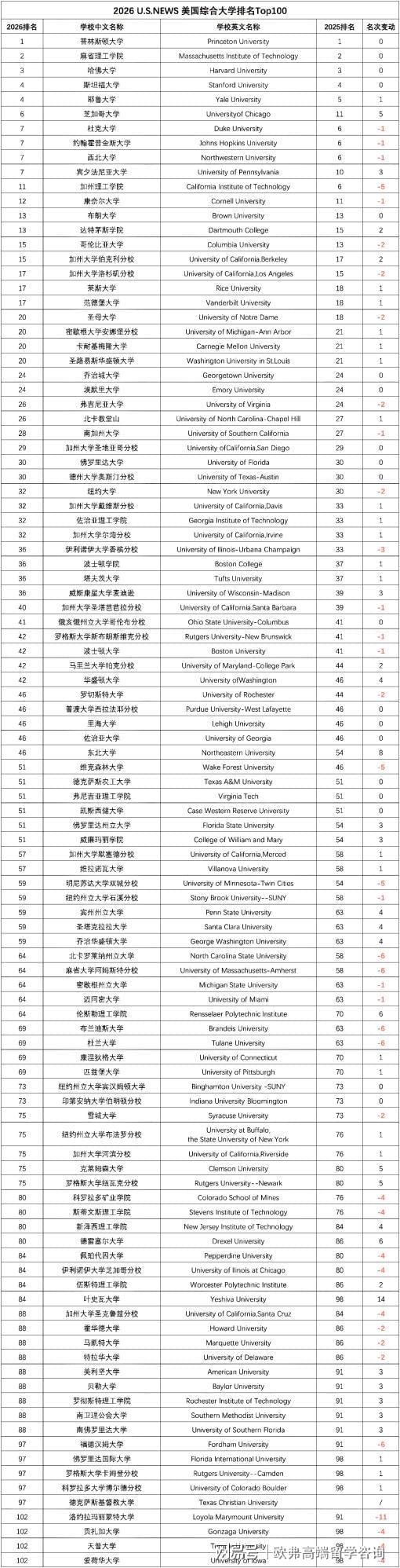 毫无疑问,今年的全美第1仍由普林斯顿大学蝉联,连续15年稳居冠军宝座。麻省理工学院、哈佛大学依然保持第2、3名的位置;耶鲁大学上升1位,与斯坦福大学并列第4位。