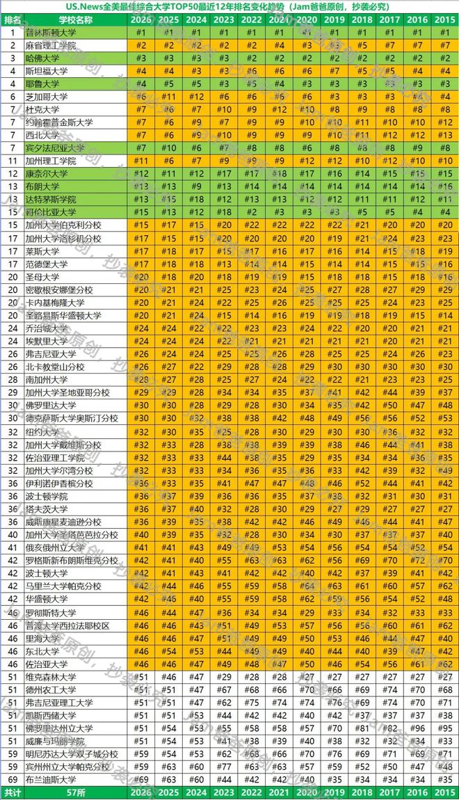 其他TOP30 如弗吉尼亚大学、乔治城、埃默里、南加大、北卡教堂山,排名都相对比较稳定。